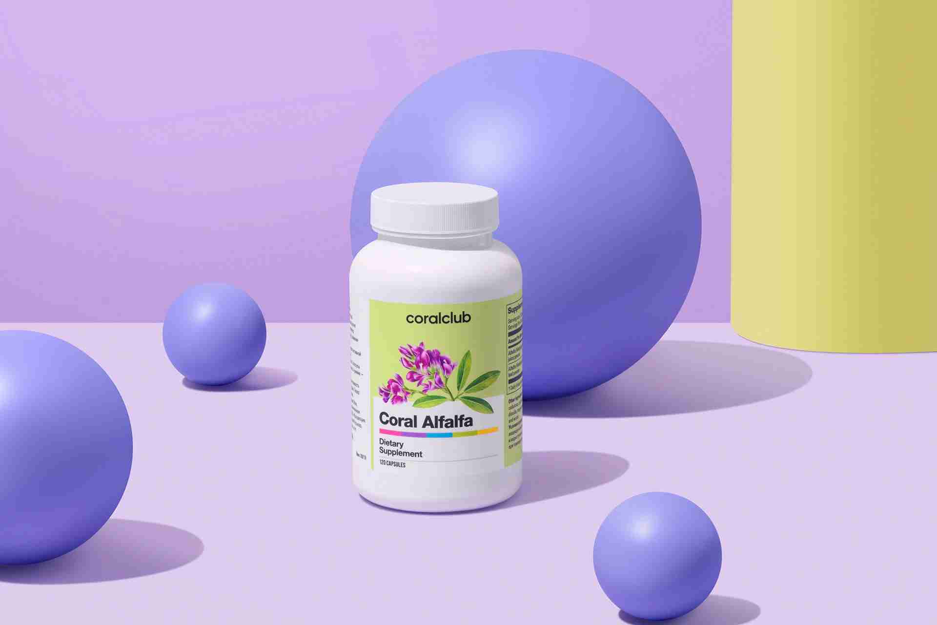 Coral Alfalfa conţine suc concentrat din frunze de lucernă, accelerând semnificativ acţiunea pozitivă asupra organismului pentru stimularea activității sistemului digestiv și facilitarea eliminării reziduurilor metabolice. Sursă de importante substanțe biologic active, precum izoflavone, vitamina K, clorofila, fluor este benefică pentru persoanele cu sănătatea fragilă, care suferă de dereglări de digestie, intoxicaţii, pentru activitatea renală şi ulcere.