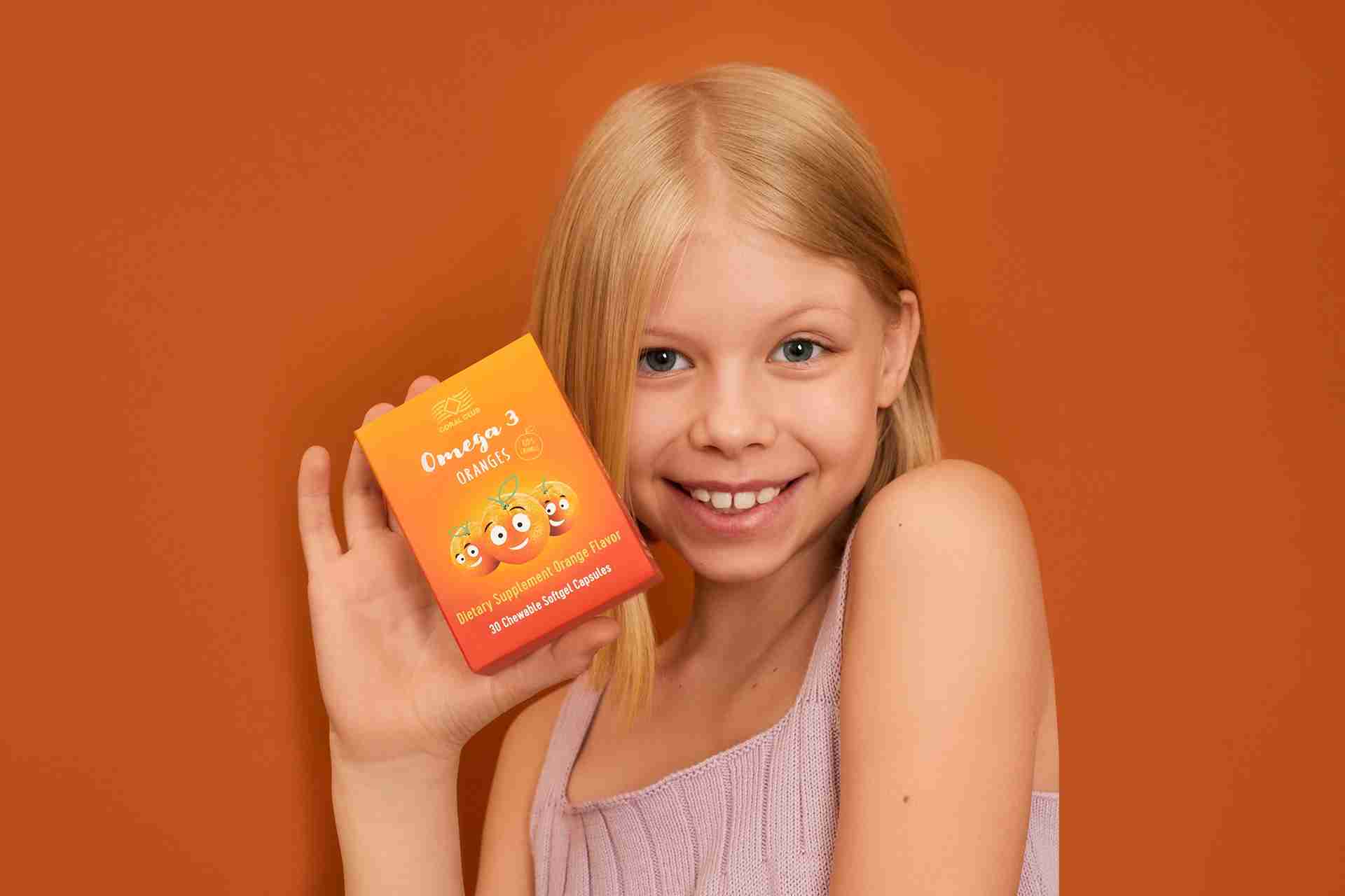 Omega 3 Oranges este un produs creat pentru copii cu vârsta de peste 3 ani și asigură organismului copiilor acizii grași polinesaturați Omega-3, a căror administrare ajută la: dezvoltarea intelectuală normală a copilului, menține capacitatea de concentrare, memoria și atenția;  normalizează comportamentul, face copilul mai liniștit și echilibrat; asigură efectul tonic general și medicinal asupra organismului copiilor; protejarea inimii și a vaselor de sânge.